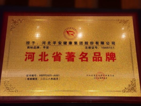 喜報:河北平安健康集團榮獲“河北省著名品牌”稱號