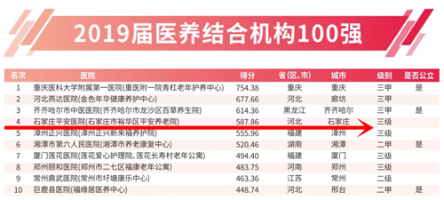 繼2019屆社會辦醫(yī)?單體醫(yī)院100強(石家莊平安醫(yī)院位列79名)、2019屆醫(yī)養(yǎng)結合機構100強(石家莊平安醫(yī)院位列第五,較2018屆上升1名)之后,石家莊再次入圍國家級榜單——2019屆中醫(yī)醫(yī)院500強。