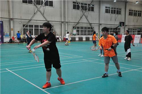 羽毛球場同樣熱火朝天,男雙、女雙、混雙,三局兩勝,比拼的是團隊的默契和身體的綜合素質(zhì)。